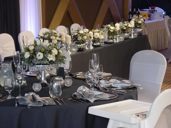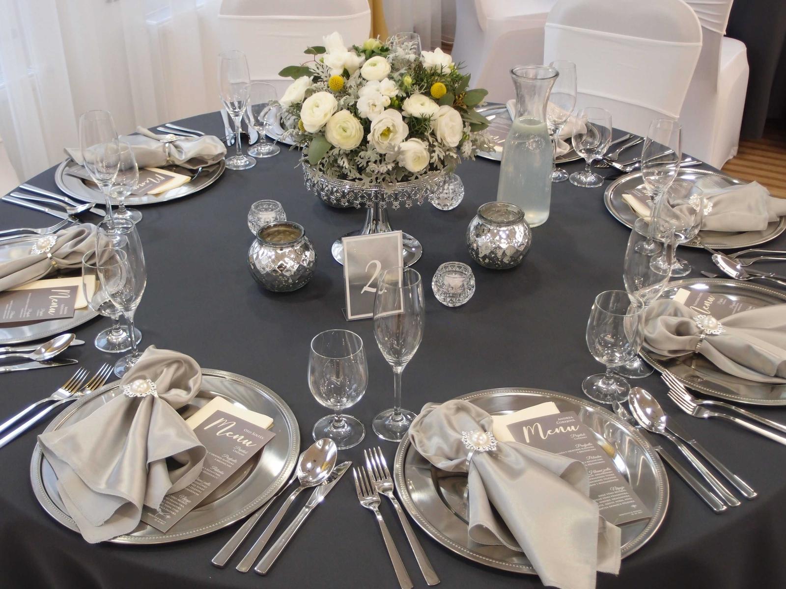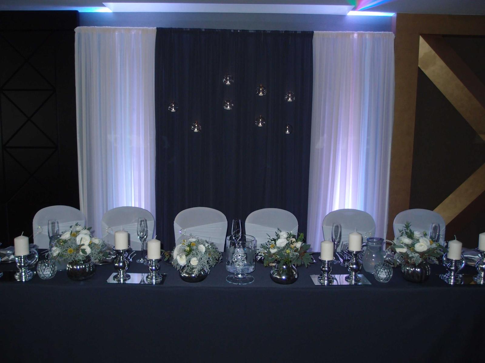 Dobrý deň, fotky z výzdoby sú naše. Obrusy na danej svadbe nie sú čierne ale antracit. Máme po 15 ks antracit materiál polyester alebo čierne saténové 15 ks, taktiež máme aj čierne návleky, v prípade záujmu nás kontaktujte. Ďakujem, s pozdravom Jana Dutková, Agentúra Harlekyn, Poprad