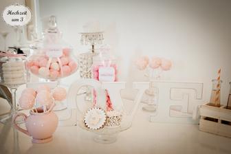 Makarónky, koláčové lízanky či cupcakes môžete naservírovať spoločne, v takzvanom candy bare, ktorého súčasťou zvyčajne bývajú i farebné cukríky v ozdobených dózach alebo pralinky s najrôznejšími príchuťami.