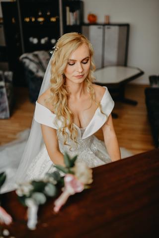 Študovala klavír na Vysokej škole múzických umení v Bratislave a dnes vyučuje spev, klavír a sama hráva na klavíri alebo orgáne na svadbách a iných podujatiach. Šikovná žena, však? Poďme sa spoločne pozrieť na to, ako sa zoznámila so svojim už teraz manželom, aký úspech mala jej pieseň pri obrade a ako prebiehal ich veľký deň.