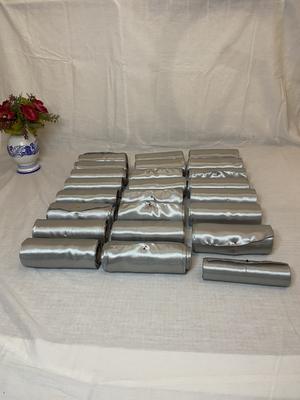 Predám šedé saténové stuhy na mašle na stoličky. Rozmery sú 15,5cm x 2,5m. Počet kusov je 117. Na koncoh sú opálené aby sa nepárali. V cene sú aj rôzne "odrezky", rozmery neviem. Sú rozdelené do katerógii krátke, stredné a dlhé. :) Cena spolu.