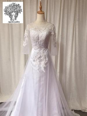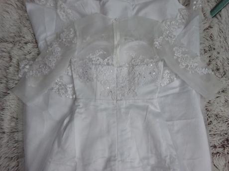 Dlhé svadobné šaty s vlečkou, sú zdobené čipkou na zadnej časti. Zapínanie - zips Dostupnosť - skladom, k odoslaniu ihneď Veľkosť - US4 Farba biela + poštovné v rámci SR