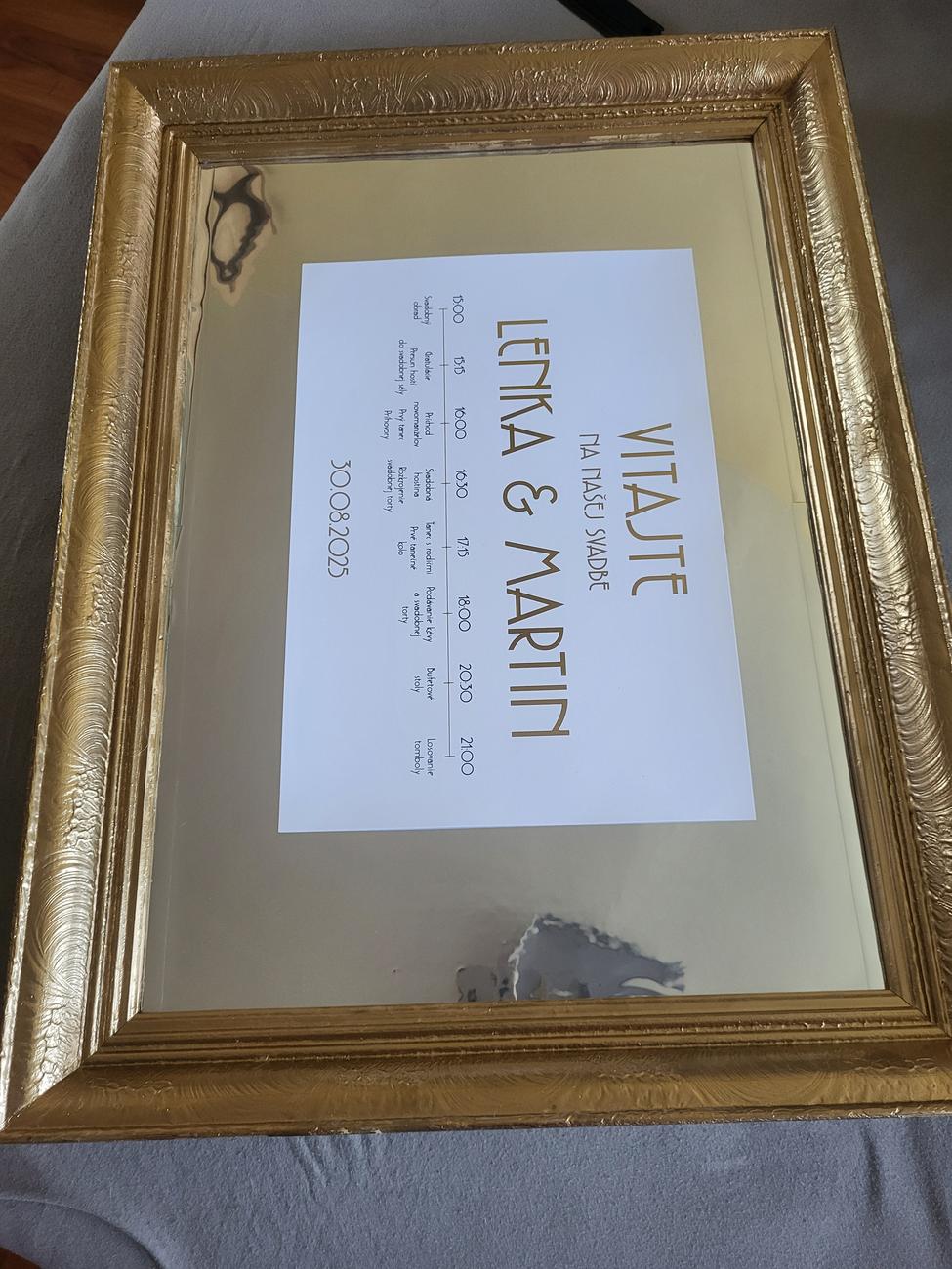 Vnútri nie je zrkadlo ale hrubý kartón obalený lepiacou fóliou s efektom zrkadla. Predávam aj s nalepenou ceduľou, je tam nalepená na malých lepkách, po odlepení je plne použiteľná na iné využitie :) Posledná fotka je zadná strana