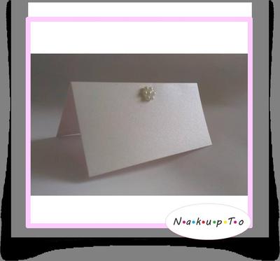Ponúkame pre vás nevestičky menovky na svadobný stôl s kvalitného perleťového kreatívneho papier, prebigovaný stredom pre stabilitu menovky. Varianta čistá (0,09eur/ks alebo s perleťovým kvietočkom (0,12eur/ks). Rozmer 10x10cm, prebigované v polovici. Bližšie info do správy.